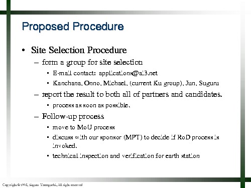 C-band site selection, Suguru Yamaguchi: Slide 5 of 8.