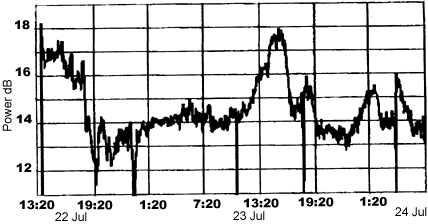 Fig 1: EIRP from satellite measurement for 22-24 July 98